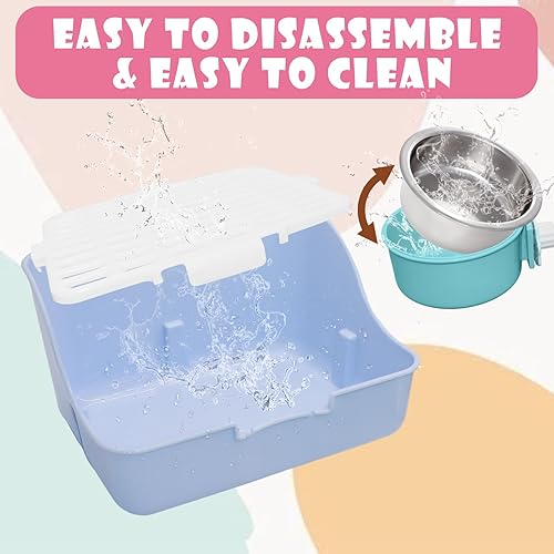 EASY TO USE: The rabbit litter box, water dispenser, hay feeder, and bowl have cage-fixed knobs that can hold them securely to your cage to prevent sliding. The attached alternative pads are used to put on the rabbit litter box and the mini broom is used to clean the box and cage.