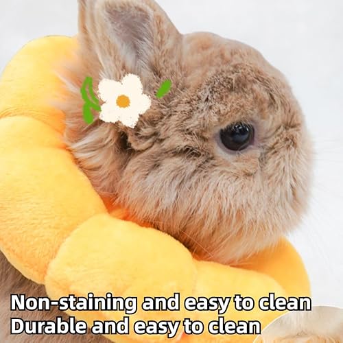 Protect Your Rabbit:The wound healing protective cone collar is a safe and good method of preventing pet from aggravating a healing wound or injury.The cute sunflower collar will not block your rabbit's vision, they can eat, drink, sleep and play normally.Whether post-surgery, to prevent licking or scratching wounds, pet nail trimming, this donut shape works better than traditional cones and flat cones.
