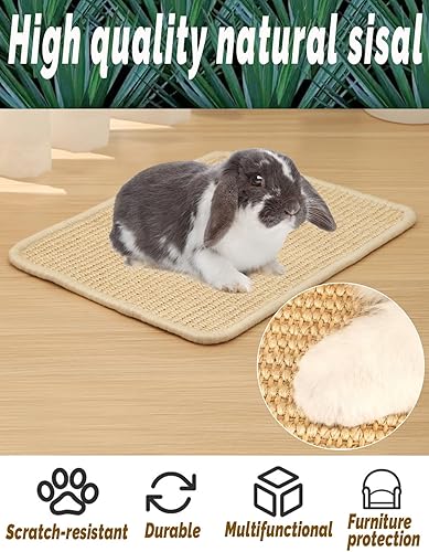 Non-Slip Design: Featuring a non-slip latex bottom for added thickness and stability, our sisal rabbit scratcher stays securely in place, preventing indoor rabbit from sliding during use