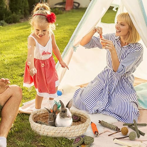 Ideal Gift - Petawi bunny toys meet the nutritional and molar needs of small animals, giving them a better growth environment.Great value gift for your loving furry friend! One of the rabbit toys could be hang in the cage with hook, also premium grass bed for rabbits, chinchillas, guinea pigs, hamsters, degus, gerbil and others . You need not worry about furniture and wires being ruined any more. Sales Service: Any questions on our item, please contact us.