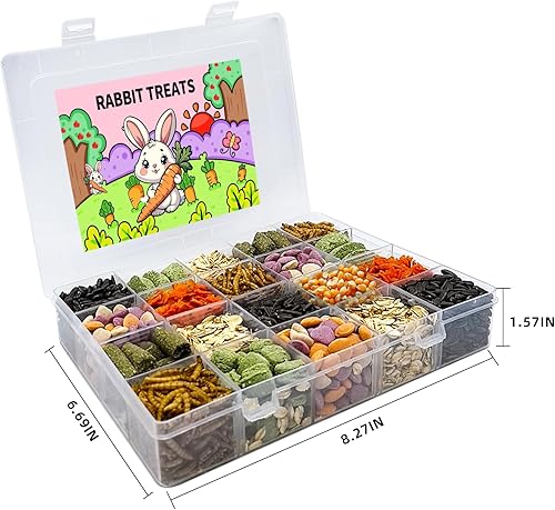 【Many Quantities】The quantity of our guinea pig treats is much more than the general ones. The medium size is 7.9×5.1× 1.4 IN / 12 Grids, and the large size is 8.3×6.7× 1.6 IN / 20 Grids. You will receive chinchilla treats box with many quantities after your purchase.