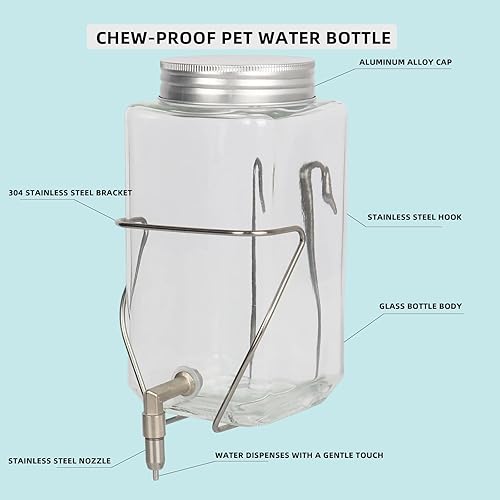【Glass+Stainless Steel】This small animal water dispenser has a glass bottle body that is bite resistant, scratch resistant, and wear-resistant; The nozzle and bracket are made of 304 stainless steel, and the kettle lid is made of aluminum alloy. The overall kettle material is anti bite. The large opening pot body design makes it easy to add water and clean. Hamsters, chinchillas, Syrian hamsters, and birds can all be used.