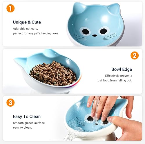 【Sturdy Ceramic & Stable Base】These raised cat food bowls are made from high-quality, healthy ceramic, our ceramic cat bowls are durable and built to last. The wide and non-slip base ensures that the bowl stays in place while your cat eats, reducing the risk of spills and messes.