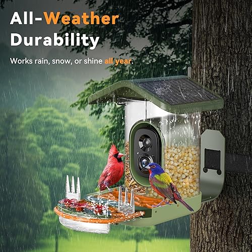Smart AI Bird Recognition and Instant Notification: The outdoor smart bird feeder pairs with the VicoHome app, offers AI bird recognition for over 10,000 species. Our solar bird house with camera equipped advanced motion sensors. No matter where you are, you can receive notification from the APP. Never miss the moment when birdwatchers visit and enjoy the little surprises that nature brings to life. (Only available on 2.4GHz WiFi)