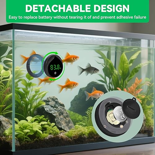 Removable:This fish tank thermometer can be removed from the fish tank by rotating it, fixing the battery cover with screws, and equipped with a screwdriver for easy battery replacement.