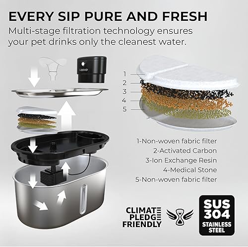 [Advanced 4-Stage Filtration System ]– Features activated carbon, ion exchange resin, and non-woven fabric to remove impurities, odors, and chlorine, providing clean and safe water for cats and dogs.