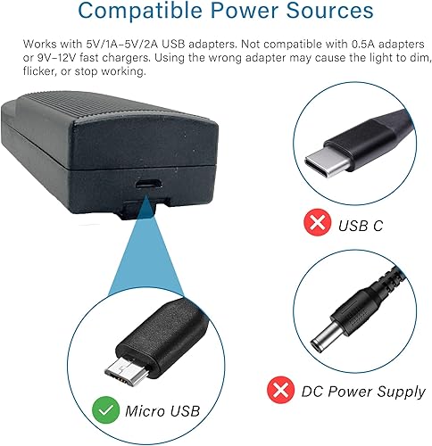 Easy Power Supply – Works with any standard 5V/1A-5V/2A USB adapter (Adapter not included)
