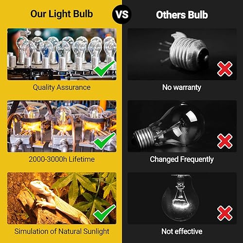 【Strict Quality Inspection】Each REPTI ZOO reptile heat lamp bulb is strictly tested as 4-stage inspection, appearance inspection, 20 sec lighting test, 30 min aging test and 2 times pulse voltage. We have passed the safety certification to ensure the service life and stability of lamps.