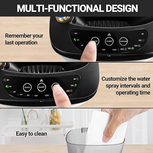 【Adjustable Spray Nozzle】: With two 360-degree adjustable misting nozzles, you can easily customize the mist direction to suit your terrarium's needs. The built-in timer and memory function automatically restarts with the previous misting duration and cycle time, enhancing user convenience.