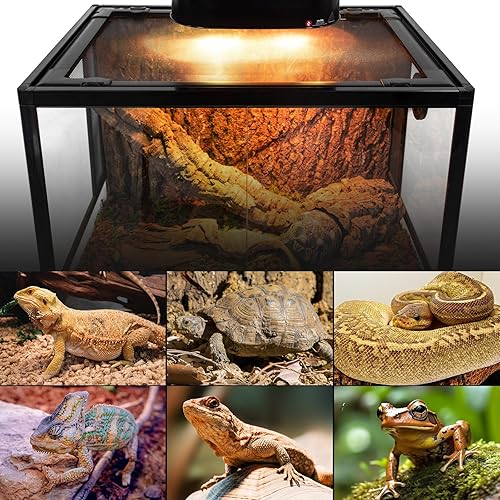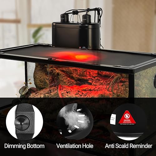 【TEMPERATURE CONTROL】: REPTI ZOO Dimmable Dual Reptile Light Fixture has 2 types of independent switches, one for UVA/UVB lighting switch control and one for heating lamp brightness/temperature adjustment. Flexible adjustment, always maintaining a comfortable living environment in the breeding box