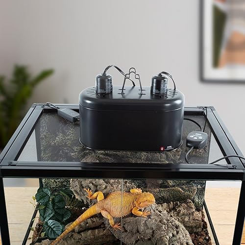 【Great Value】With one purchase you can have dual deep dome reptile light fixture, dimming thermostat, and timer! With independent controls, you can set the suitable temperature range and heating or lighting time for your pet separately, which makes it easier to manage. (One side of the dual fixture features a timer function, while the other side has a temperature control function. The temperature control and timer functions cannot be used on the same side.)