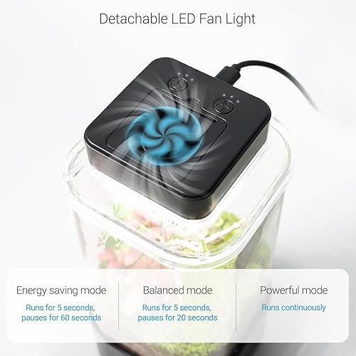 【Insect Terrarium with Detachable Fan Light】Equipped with three levels adjustable LED lighting and fan system to ensure a comfortable feeding environment for insects.