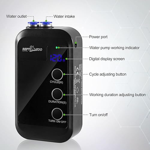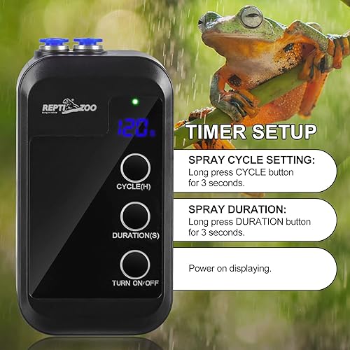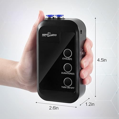 【Intelligent Circulation Reptile Misting System】With smart timing function, regular cycle spray can be set to humidify the terrarium. No worry about your reptiles when you are going out for days.And the operation is simple.