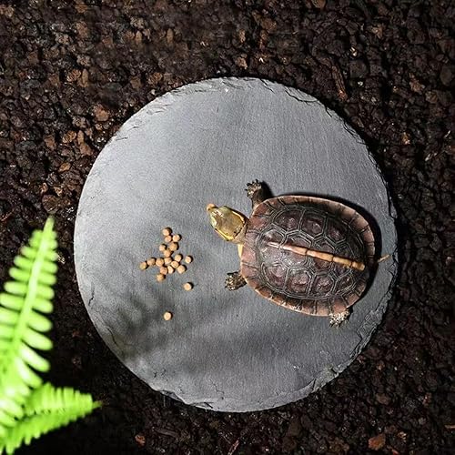 Reptile Basking Platform- Tortoise slate is made of slate stone material with natural texture on the surface, hard texture, natural color, high temperature,attached 4 anti-slip mats at the bottom