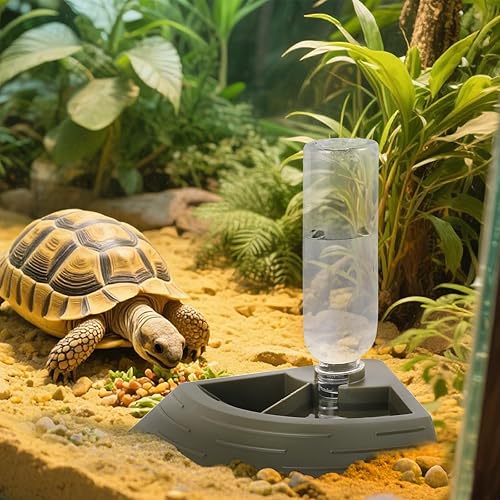 ANTI- KNOCKED OVER WATER FEEDER: unlike other automatic feeders, our reptile feeder connected by screw,when screwed the water bottle into the base,it will sturdy and not easy to knocked over by small animals.
