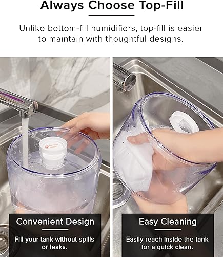 【Large Capacity & Dry-Run Protection】 The water tank holds up to 2.5 liters(0.66 gallons) of water. Dry-run protection shuts off the device when the tank is empty. Best used along with a humidity controller or timer.