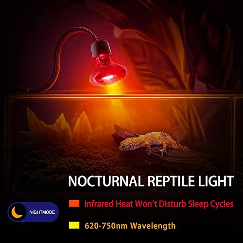【Eye-Safe Infrared Observation】Infrared light bulb offers dim glowing light for nighttime viewing with proprietary coating that filters UVA/UVB while remaining gentle on reptile eyes.