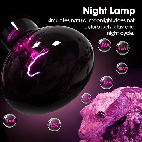 【No Disturbing】: The nightlight bulb emits soft moonlight, no worry about disturb the reptile's day/night cycle. It's the best choice for observing reptiles night activities.