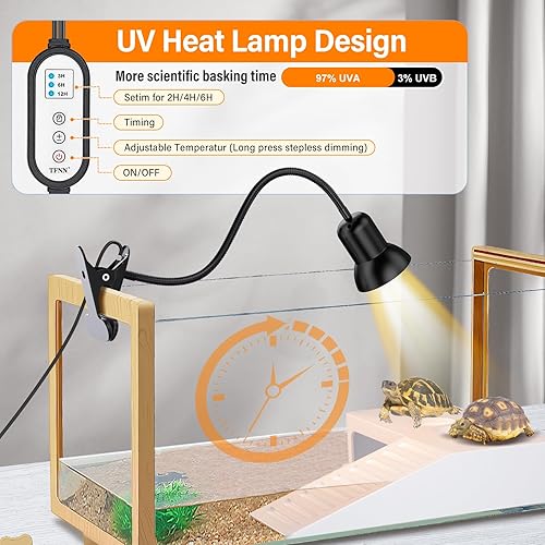 【Newly Upgraded Bell-Mouth Design】 :This newly upgraded heating lamp with a TFNN bell-mouth design provides a wider range of UVA/B ultraviolet rays compared to the design of ordinary models. It can simultaneously heat and illuminate multiple reptiles. The light is adjustable, making it suitable for different seasons and various reptiles, and it is extremely convenient to use.