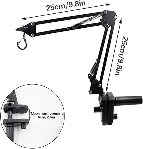 Size Details: The maximum height of the metal bracket is 19.7 inches, and the 360° swing arm can be adjusted to the desired height. The clip-on base clamps tables up to 2.36 inches thick, round tubes or glass jars, etc.