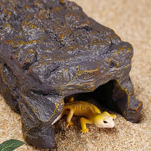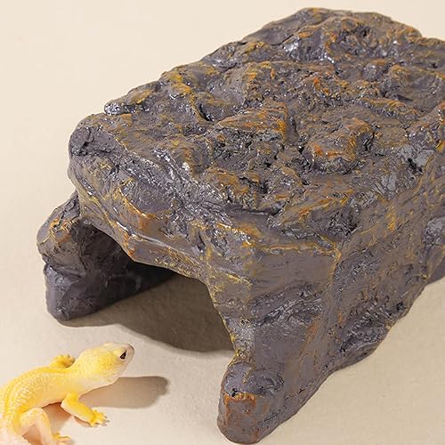 Robust Resin: With its top stage heated for durability and relaxation, our reptile cave, made of excellent resin, provides a cozy haven for basking or unwinding in comfort