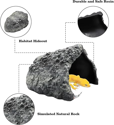 【Reptile Rock Hide Cave】: Provide your reptiles with a secure and cozy retreat. Our rock hide cave mimics natural environments, allowing your pets to feel safe and reduce stress. Perfect for bearded dragons, geckos, and ball pythons, this cave offers the ideal hideout for resting and exploring.