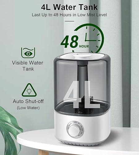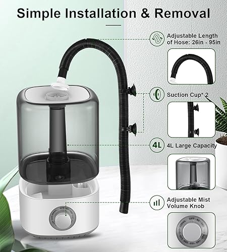 【Versatile All-in-One Device】 Our humidifier includes a specialized household nozzle with dual mist outlets that offer 360-degree adjustability to effectively maintain ideal humidity levels in bedrooms, offices, nurseries, living rooms, and throughout your entire home."