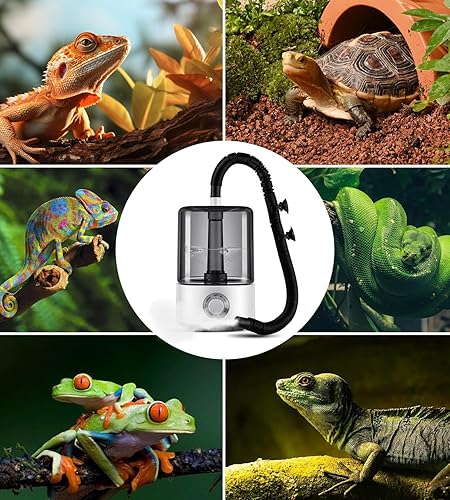 【Optimal for Reptiles and Amphibians】 Includes a flexible hose that extends from 26 to 95 inches, allowing you to adjust its length for terrariums or grow tents. The reptile fogger with humidity control effectively simulates natural environments, creating a misting atmosphere perfect for frogs, lizards, mosses, geckos, snakes, turtles, water dragons, hermit crabs, and indoor gardening.
