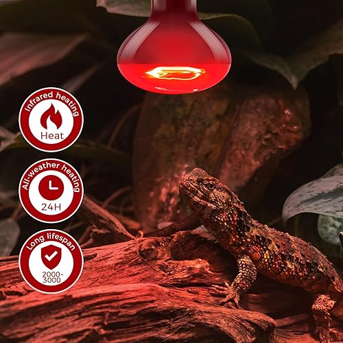 24/7 Infrared Heating: This reptile heat lamp delivers robust warming performance, with rapid-heat technology to ensure adequate warmth even in frigid environments. The gentle infrared glow maintains natural circadian rhythms without disruption