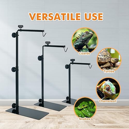 Sturdy All-Metal Construction – Built with a high-load-bearing design, this reptile lamp stand securely holds multiple dome lampshades (up to 3) and supports heavy heat/UVB bulbs without wobbling. Perfect for long-term use on glass terrariums.