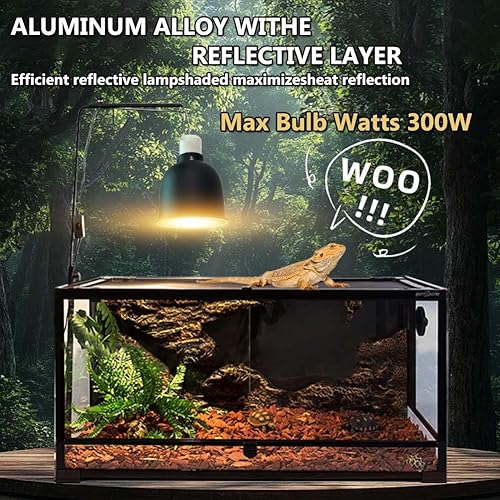 【Reptile Light Fixture】This efficient reflection lampshade is made of high quality highly finished aluminum material, which can greatly enhances the output of UVA and UVB, Suitable for UVA basking spot lamps, UVB reptile lights, heat lamps, heat emitters, etc. However, when connecting the reptile light fixtures with the thermostat, please DO NOT use the sun lamps, LED lights or energy saving light bulbs.