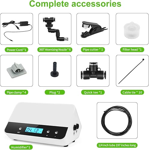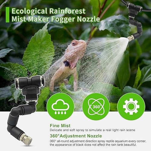 【DIY Your Rainforest system 】 You can install the location of the reptile humidifier exactly as you want. The 16ft tube, and other accessories allow you to set up a small spray system in any corner. Complete accessories, easy to install.