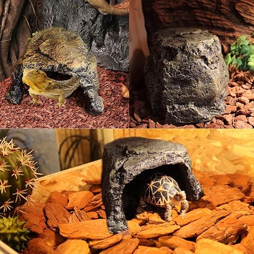HEAVY MATERIAL--- The reptile hide cave is made of high quality resin, hard, solid and sturdy, adding to the sense of security for your pets as it will not move or float when they move