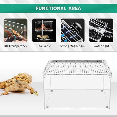✅【Provide Your Pet With a Comfy Home】 Our acrylic reptile enclosure is all-round transparent,There are a number of ventilation holes on top and sides, which provides sufficient air circulation. it's convenient to observe your slithery friends in the box and feed them in time.