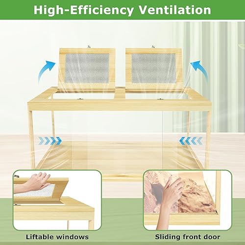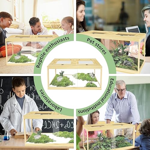Pet-friendly natural habitat: Nalwort reptile tank is constructed with solid wood and acrylic materials, featuring the natural wood grain and texture of pine. This design truly simulates the reptiles' natural habitat, providing a comfortable living space. (Please note: the reptile terrarium tank is NOT suitable for water storage)