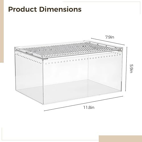 Reptile Terrarium Enclosure, 11.8 x 7.9 x 5.9 in / 30 x 20 x 15 cm Acrylic Tarantula Breeding Box, Transparent Jumping Spider Cage, Snake Terrarium