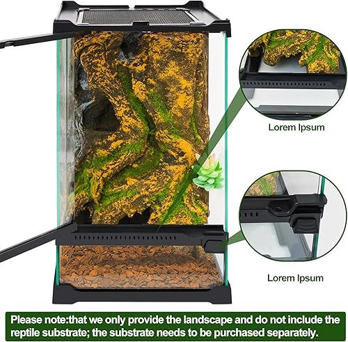 Versatile Applications:This reptile habitat kit is suitable for various amphibians and reptiles, including lizards, chameleons, snakes, frogs, spiders, turtles, geckos, bearded dragons, and ball pythons, providing your pets with an ideal living space. Moreover, this decorative tank is not only suitable for home use but can also serve as a display tank, widely applied in reptile clubs, commercial exhibitions, and more, adding a unique charm to any environment.
