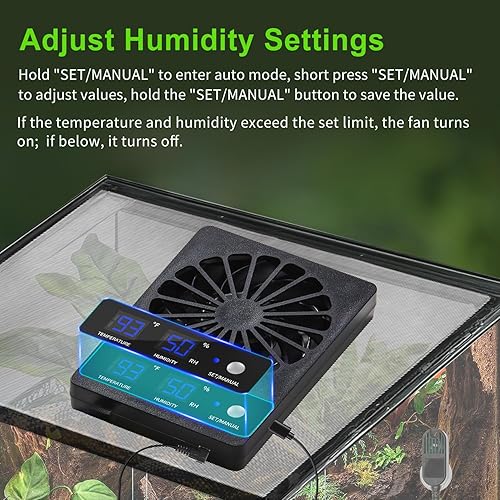[Multi-Function Design]: This reptile ventilation fan is both an efficient ventilation system and a temperature and humidity monitor, keeping your aquarium or insect tank environment perfect for your reptiles.