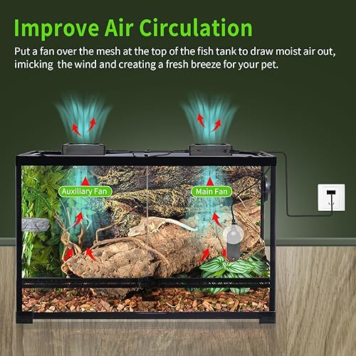[Enhanced Ventilation System]: The main fan and auxiliary fan work together to enhance ventilation, allowing your plants to breathe freely, improving air quality, and creating a safe environment for your reptiles.