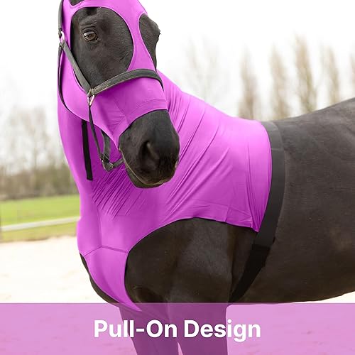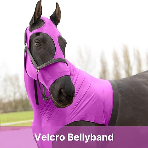 ✅ SECURE FIT WITH ELASTICATED EDGES & VELCRO: Featuring elasticated edges and durable Velcro fastening, this horse hood ensures a secure fit. The adjustable buckle clip closure allows for a tailored fit, perfect for a horse stretch hood or a sleazy sleepwear for horses.