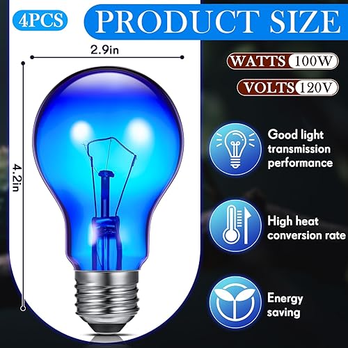 Comprehensive Package: each package includes 2 red and 2 blue 100W reptile night heat bulbs, ensuring you have the requisite tools to meet the diverse lighting needs of your reptiles; This complete set is an excellent tool for maintaining a healthy environment for your pets