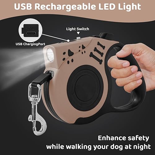 USB Rechargeable Flashlight for Night Walks: COSOWO dog leash comes with a flashlight, no need to carry an extra one, making it very convenient. It enhances safety while walking your dog at night, providing enough brightness to see the path clearly and avoid tripping or stepping into holes. The USB charging is highly convenient, there's no need to buy extra batteries.