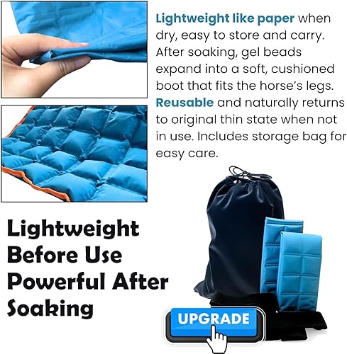 【Reusable Gel Bead Core】 Features a unique gel bead core that expands when soaked, staying soft and flexible to contour around the horse’s leg. With 64 individual gel bead pockets, even if one section breaks, the rest remain fully functional for continuous use.