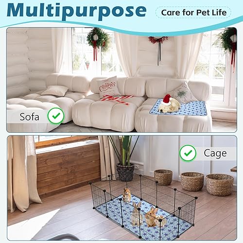 【2-Pack 47"x24" Fit】 This set has 2 replaceable reusable guinea pig liners for cage, which fit perfectly into C&C grid cages. The rabbit cage mat’s generous size creates a soft, comfy space for your pets and keeps floors clean—this practical design makes the bunny pee pads a favorite among pet owners