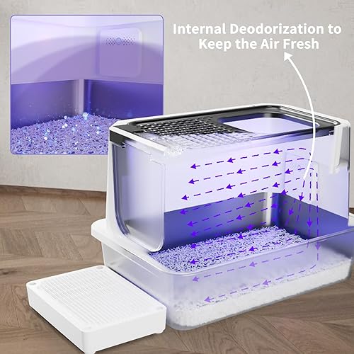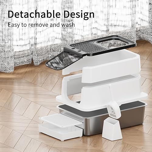 [Split Design with High Walls – Keeps Litter Inside] The upper and lower separation design with tall sides prevents litter scatter and leakage. The raised entry step reduces tracking, keeping your floors tidier.