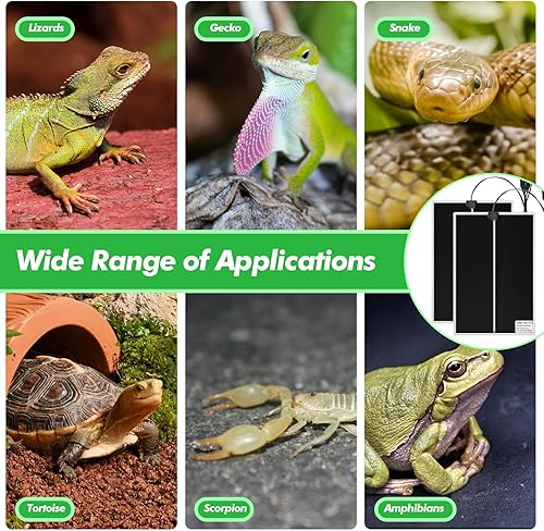 Quality Material: reptile heat mat is made of quality Nichrome heating wire and quality PVC material, it can reach the required temperature in a short time, distributes the heat uniformly to the surface of the substrate, and provides gentle and warm heat for your loved pet or insect breeding; Please note: don't lay reptiles or insects directly on top of the pad, do not place under flammable items, such as blankets, clothing, wooden items