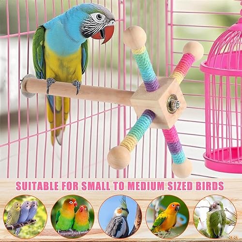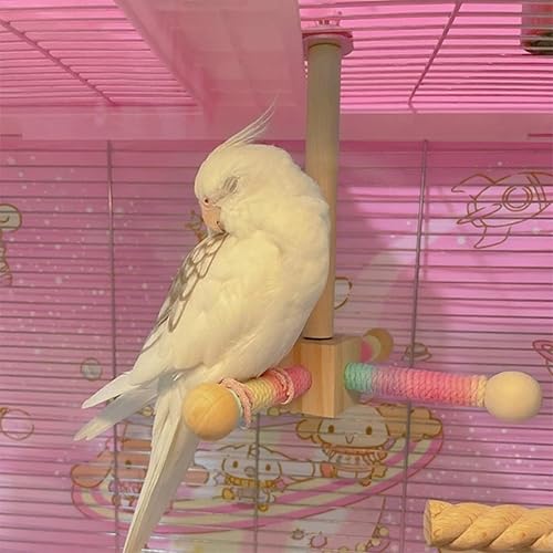 COMFORTABLE GRIP: Rainbow-colored rope wrapping on all four perches ensures comfortable and secure grip for birds' feet