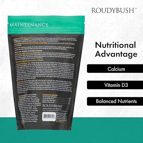 TRANSITION WITH CONFIDENCE: These bird pellets are perfect as a transition food when switching your bird from the old bird food to Roudybush. There is no need for additional vitamin or mineral supplements.