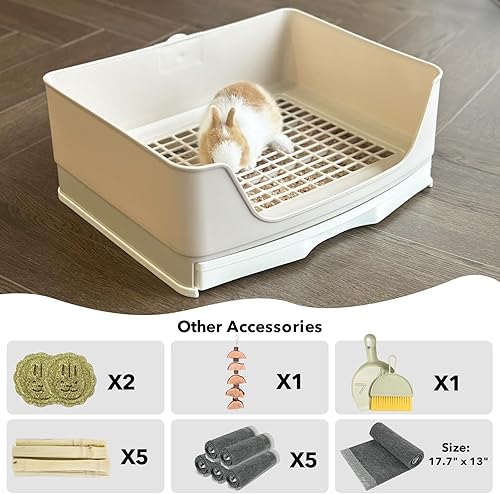 Spacious Comfortable: This large rabbit litter box offers ample space with dimensions of 16.9" long x 11.8" wide x 6.3" high, making it ideal for adult rabbits, guinea pigs, ferrets and chinchillas.The litter box rabbit, say goodbye to cramped corners