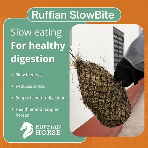 VERSATILE FEEDING SOLUTION: Ruffian Slowbite is your all-in-one solution, whether you need a hay net, haynet for horses, horse hay bag, slow feed hay bags for horses, or even an equine hay basket.
